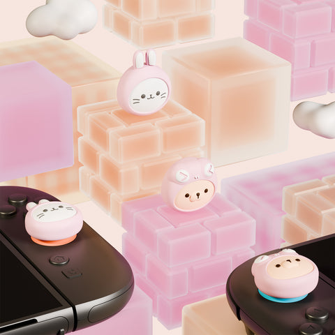 PlayVital 4 Pcs Thumb Grips for Nintendo Switch 2, Kawaii Silicone Thumbstick Caps for Joycon 2, Joystick Cover for Switch 2 Accessories - Pink Cosplaying Kitten & Puppy - WWYNTJ008
