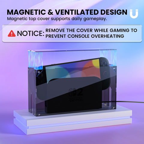 4. The magnetic top lid makes it easy to switch between play and standby modes—simply lift the lid when gaming and snap it back afterward. Designed with ventilation slots on the back bottom side to maintain airflow and prevent overheating, you don't need to remove the whole dust cover when the console is powered on, and it fits naturally into any setup.