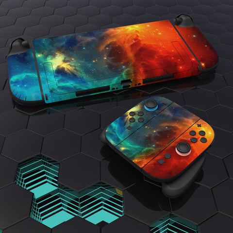 PlayVital for Nintendo Switch 2 Skin Full Set (2-Pack) - Protective Vinyl Decal Stickers for Switch 2 Console, Joycons, Handle Grips & Dock | No Residue, Anti-Scratch - Orange Star Universe - YUDNT015