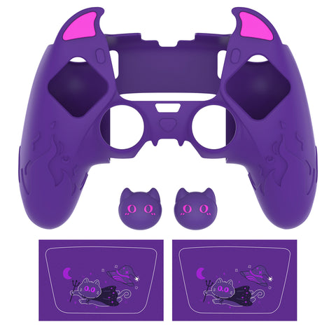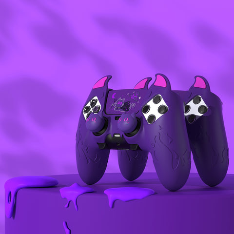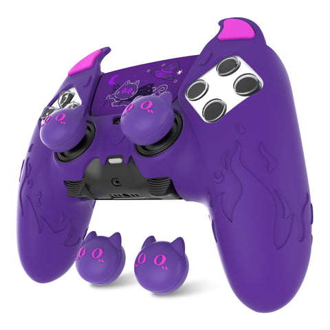 PlayVital Cute Demon Silicone Case for ps5 Edge Controller, Kawaii Controller Cover Skin Gamepad Protector for ps5 Edge Accessories with Touch Pad Sticker & Thumb Grip Caps - Purple - MWKEGP002