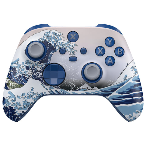 eXtremeRate ASR Version Performance Rubberized Full Set Shell Buttons with Redesigned Grip Diamond Texture Handles Backplate Case for Xbox Series X/S & Xbox Core Controller - The Great Wave - GVNX3T001