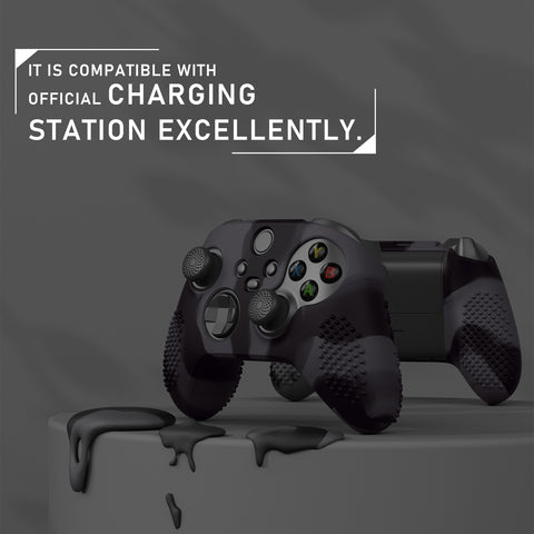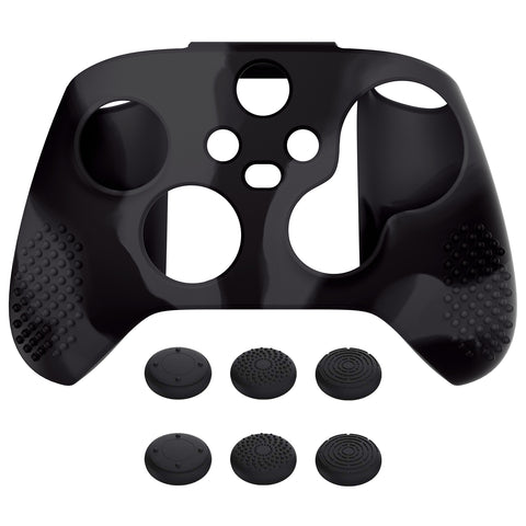 PlayVital Dark Gray & Black 3D Studded Edition Anti-slip Silicone Cover Skin for Xbox Series X Controller, Soft Rubber Case Protector for Xbox Series S Controller with 6 Black Thumb Grip Caps - SDX3024