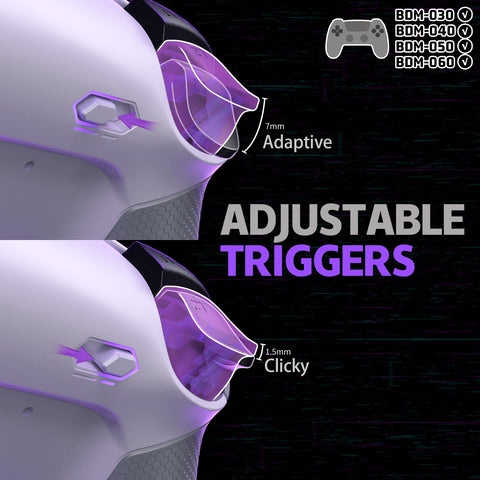 8. Switch between digital "Clicky Triggers" for the L2 and R2 and adaptive triggers, to adapt to any game or play style. Enjoy faster, crisper short trip triggers for shooting or long trip triggers for detailed control.