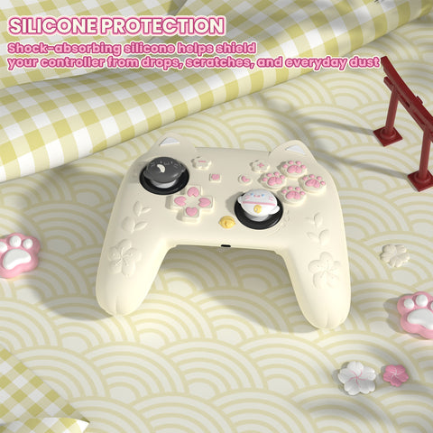 3. Inspired by Japanese festival art, the design combines 3D cat ears, kitten graphics, petals, fans, and paw icons, turning your controller into a cute display piece that looks great on a desk, stand, or shelf.