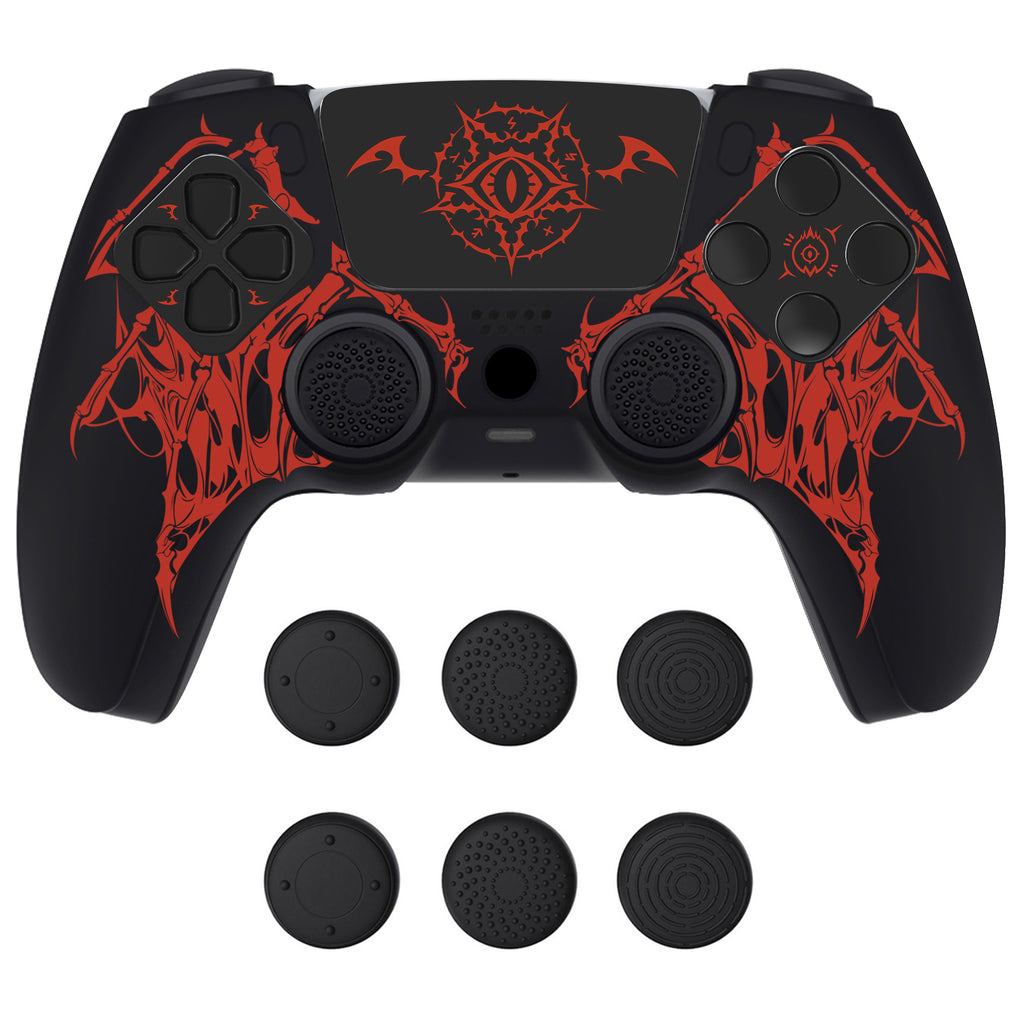 PlayVital Design for PS5 Controller Skin Cover Fit with Charging Station - Anti-Slip Silicone Controller Grip Case for PS5 with 6 Thumb Grip & Sticker, Pure Series Dockable Model - Wings Sigil Red - EKPFL008
