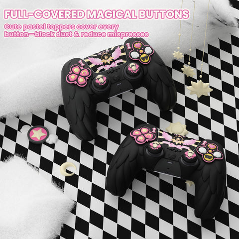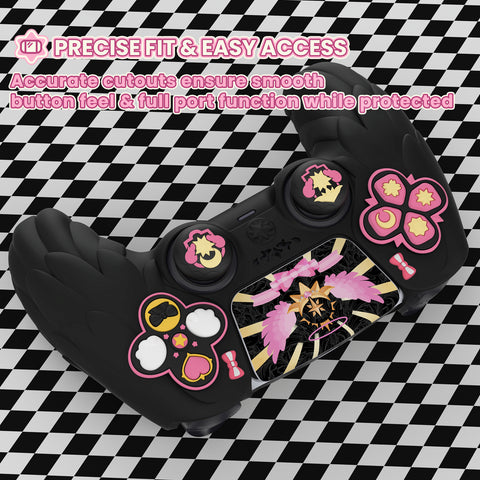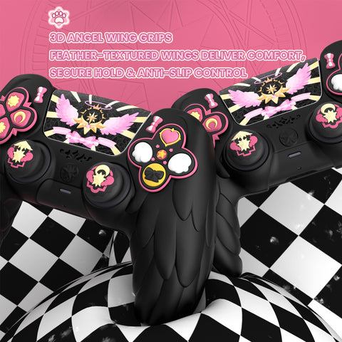 PlayVital Magic Wings Protective Silicone Cover Skin for PS5 Controller – Soft Anti-Slip Grip Protector Case for PS5 Controller with Thumbstick Caps & Themed Stickers, Charging Station Compatible - Black - YLEPFP001