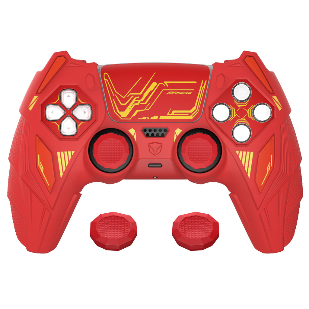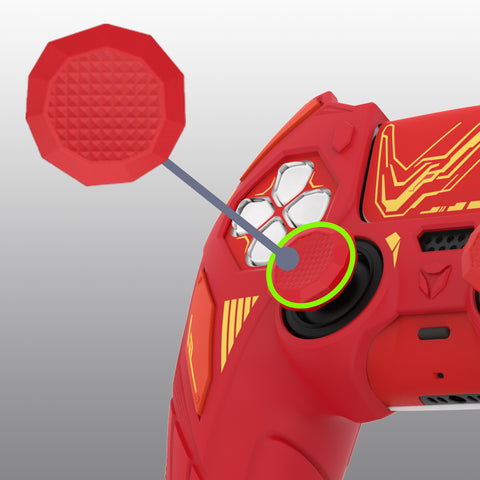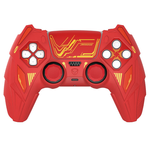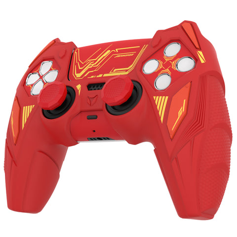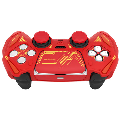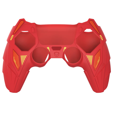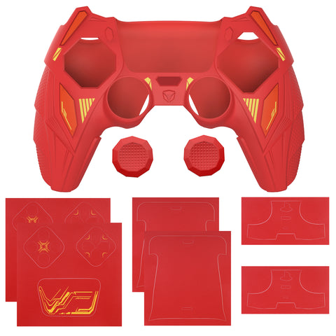 PlayVital Mecha Rhino Silicone Cover for PS5 Controller with Thumb Grips & Stickers, Anti-Slip Controller Grip Skin Accessories Compatible with PS5 Charging Station - Maple Red & Brick Red - HZAPFP004