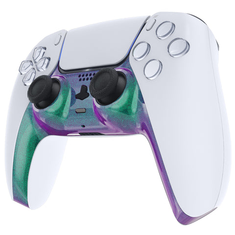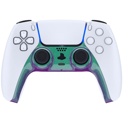 eXtremeRate Chameleon Green Purple Decorative Trim Shell Compatible with PS5 Controller, DIY Replacement Clip Shell Compatible with PS5 Controller, Custom Plates Cover for PS5 Controller with Accent Rings - GPFP3002