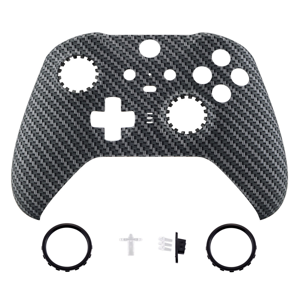 eXtremeRate Replacement Front Housing Shell Case for Xbox One Elite Series 2 & Elite 2 Core Controller (Model 1797) - Black Silver Carbon Fiber - ELS209