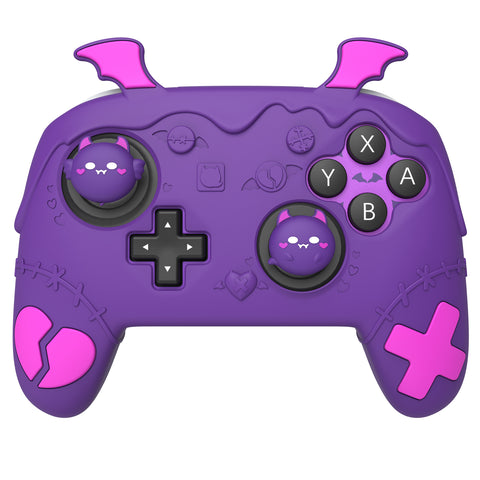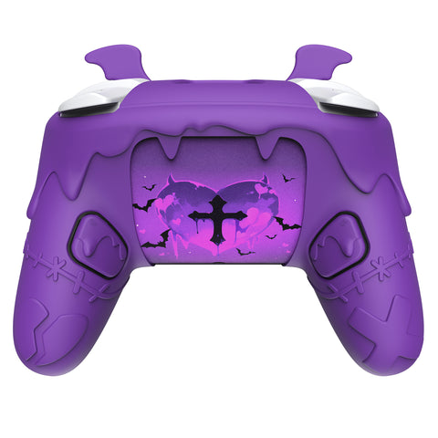 3. The design leans into a playful dark style: devil wings, dripping heart icons, small bats, and stitched accents wrap around the grips and back for a cohesive gothic-kawaii look that stands out whether the controller is in use or on display in your gaming corner.