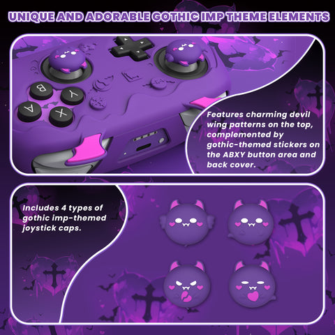 6. Each set also includes imp-style thumbstick caps, GL/GR silicone back-button covers, and matching stickers for the back and button area. Together they upgrade traction, make rear button presses smoother, and finish off a unified Gothic Imp theme for Nintendo Switch 2 Pro controller.