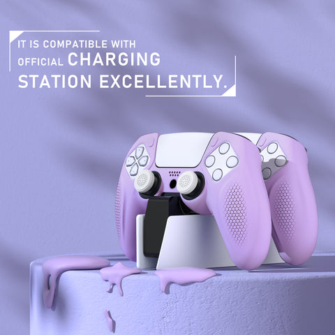 PlayVital Ninja Edition Anti-Slip Silicone Cover Skin for ps5 Wireless Controller, Ergonomic Protector Soft Rubber Case for ps5 Controller Fits with Charging Station with Thumb Grip Caps - Mauve Purple - MQRPFP004