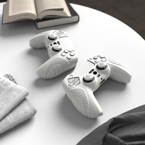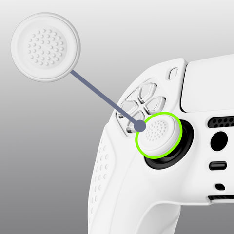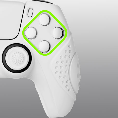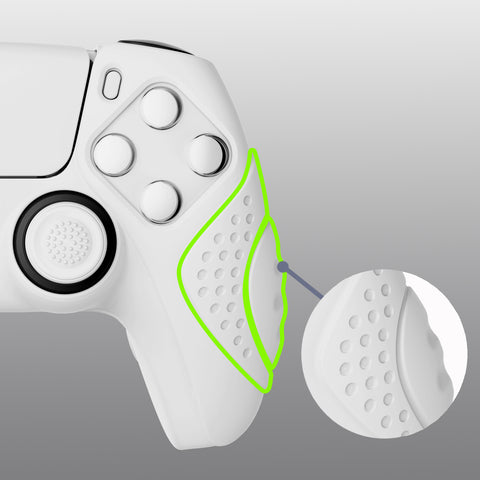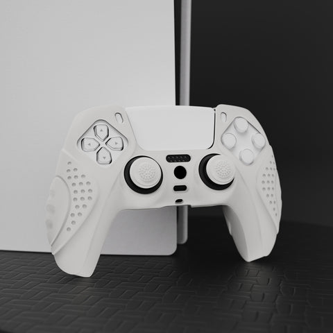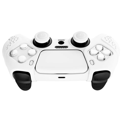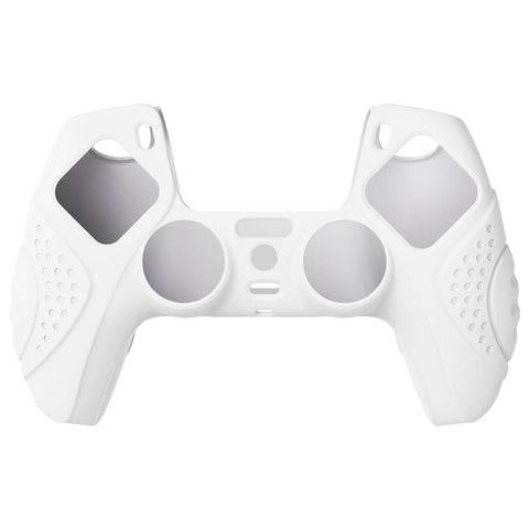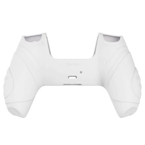 PlayVital Guardian Edition White Ergonomic Soft Anti-slip Controller Silicone Case Cover, Rubber Protector Skins with White Joystick Caps for PS5 Controller - YHPF002